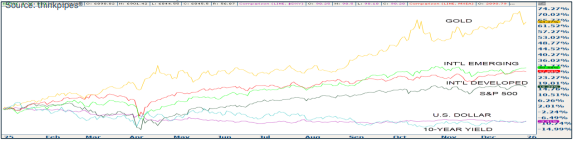 It was a tale of two halves in 2025. The first half was marked by a sharp decline in risk assets after the U.S. announced sweeping tariffs in early April. However, a quick recovery set the stage for a strong second-half rally that left global equity indices near record highs as the year ended. Last year’s performance across different asset classes could be attributed at least in part to the U.S. dollar’s struggles. Many analysts expected the dollar to rise, as a country’s currency often benefits from higher tariffs, but instead the greenback posted its worst first half since floating exchange rates began in the early 1970s. Concerns mounted over shifts in U.S. trade and other policies while the Fed’s independence came into question. That started rumblings of a loss in confidence in traditional safe-haven assets like U.S. Treasuries, which caused a temporary rise in long-term yields that eventually subsided after the Fed resumed its rate-cutting cycle in September. Rotation away from U.S. dollar-denominated assets was evident, however, when looking at the leaders of 2025. International stocks had the best outperformance versus U.S. stocks since 2009, while international bonds also delivered outsized returns. Commodities like gold, silver, and copper soared, aided by strong demand, a weaker dollar, and falling interest rates. The U.S. dollar index ($DXY) and the 10-year Treasury yield spent much of the second half in a basing pattern amid economic uncertainty and evolving Fed policy. If Europe's growth revival materializes and the Bank of Japan becomes more aggressive raising rates, the dollar may come under renewed pressure and thus extend the positive trends of other assets like equities and commodities.